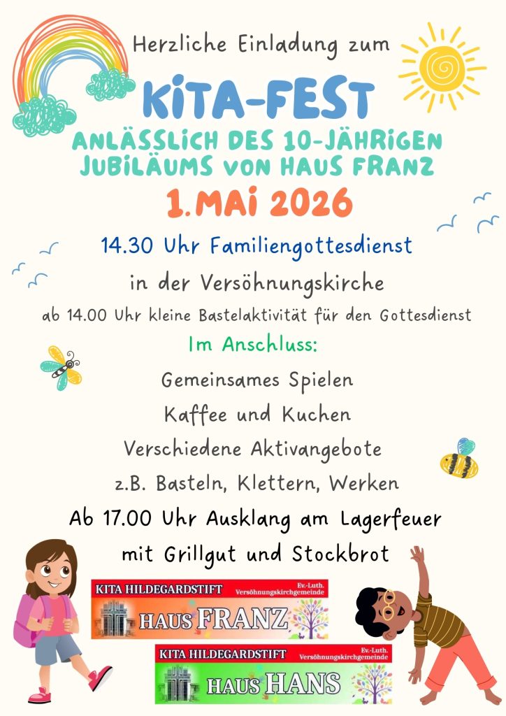 | 01.05.2026 | Nachmittags | Kita-Fest zum 10-jährigem Jubiläum im Haus Franz | Kita |